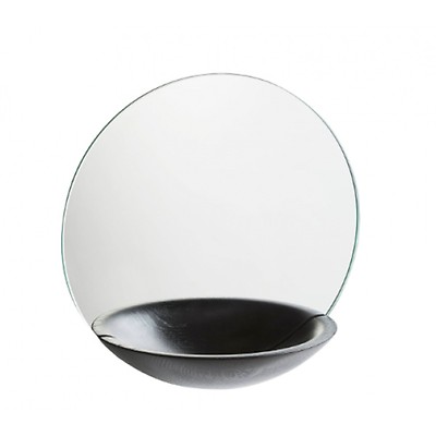 Runder spiegel mit holzablage.